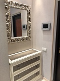 Внутренняя отделка – дорогой ремонт в классическом современном стиле. В оформлении пространства преобладает светлая палитра, которая визуально делает квартиру еще более просторной, а также наполняет ее уютом и каким-то особым очарованием. Мебель, декор и прочие элементы внутреннего убранства подобраны в соответствии с общим стилем оформления.