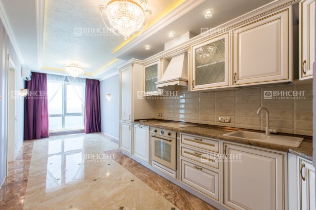 Внутри, незадолго до продажи, был выполнен новый ремонт. В основе оформления пространства – изящная современная классика, очаровывающая своим уютом и лаконичным шиком. Установлен дорогостоящий кухонный гарнитур, сантехника, кондиционеры, встроенные шкафы и системы хранения.