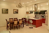 Светлая, просторная и изысканная квартира расположена в клубном доме с собственным спуском к морю, до которого всего 5 минут пешком. Благородные бежевые цвета в интерьере наполняют светом и пространством большой зал и две просторные спальни. Из кухни – выход на просторную террасу, завтраки и ужины на которой будут доставлять вам огромное удовольствие. Терраса крытая, поэтому во время дождя вы сможете дышать здесь свежим, наполненным озоном воздухом, наслаждаясь шумом волн.