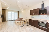 Внутренняя отделка – это очень стильный ремонт, выполненный по проекту ведущей дизайнерской студии. В интерьере переплетаются между собой изысканная современная классика и очаровательная тематика средиземноморья. Обилие светлых цветов наполняет все пространство какой-то непередаваемой легкостью и уютом. В эту квартиру влюбляешься с первых секунд пребывания в ней!