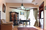 Интерьер выполнен в светлых тонах. В качестве напольного покрытия выступает высококачественный дубовый паркет, а стены оклеены обоями под покраску. Санузел раздельный. Квартира продается вместе с мебелью и некоторой бытовой техникой и электроникой.