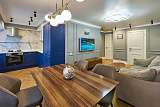 Приобрели эту квартиру для себя, поэтому ремонт сделан с использованием высококачественных материалов и с большим вниманием к каждой детали. Она не эксплуатировалась в качестве сдаваемого жилья и использовалась лишь пару месяцев в год.