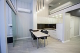 Вся квартира выдержана в едином современном стиле согласно индивидуальному дизайн-проекту. Использованы только дорогие и качественные материалы.