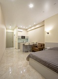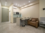 В апартаментах сделан ремонт лучшим дизайнером Сочи. Обстановка также продумана тщательным образом – есть все для комфорта жильцов. При отделке использовались самые качественные дорогостоящие материалы, которые придают утонченности квартире.