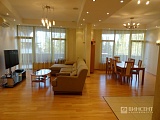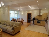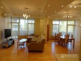155 кв.м., 2 спальни, 2 с/у, кухня-столовая, гостиная (в отделке - дорогостоящие материалы: мрамор, паркет, керамогранит).