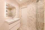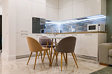 В квартире выполнен свежий дизайнерский ремонт, который придает ей атмосферу тепла и современности.