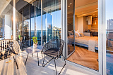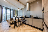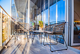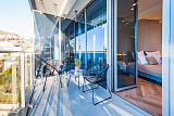 Интерьер квартиры отражает современную изысканность: кухня оснащена бытовой техникой высокого класса, спальня оборудована удобным матрасом для глубокого сна, а просторный балкон станет вашим личным местом обзора морских видов.