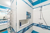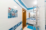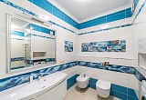 Интерьер тут выполнен в очень оригинальном стиле, который сочетает романтику средиземноморской тематики и морские мотивы. Стоит отдать должное дизайнерам, которые продумали буквально каждую мелочь, уделив большое внимание подбору мебели и различных декоративных элементов – занавесок, картин и т.д. Очень красивая палитра красок.