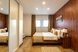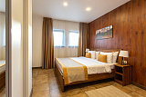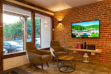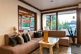 Апартаменты входят в состав нового апарт-отеля, расположенного в сердце поселка Красная Поляна. Придомовая территория находится под круглосуточной охраной. На первом этаже находится ресторан и стойка специалистов консьерж-сервиса с зоной для отдыха.