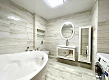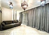 Квартира в жилом комплексе бизнес класса "Фальконе", который расположен на улице Первомайская дом 19. Жилой комплекс находится в пяти минутах ходьбы до морпорта, рядом самая красивая улица в Сочи Навагинска, до парка "Ривьера" идти около десяти минут. Рядом Органный зал и музыкальная школа. В квартире сделан дизайнерский ремонт. Ремонт делали три года назад, но состояние квартиры такое, как будто ремонт сделали совсем недавно. Собственники квартиры использовали как курортную недвижимость и приезжали очень редко, примерно два раза в год при условии аккуратного обращения к мебели и ремонту.