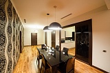 Стильная квартира с дорогостоящим ремонтом – находка для людей, которые ценят не только комфорт и удобство, но и эстетику. Пространство тут оформлено в современном стиле, который сочетает в себе сразу несколько веяний – от современной европейкой классики до популярного хай-тека. Светлая цветовая палитра обыграна контрастным декором. Мебель, которая находится внутри, идеальным образом гармонирует с общей стилистикой! Даже бытовая техника не выбивается из общей концепции. Квартира на самом деле выглядит очень гармонично.