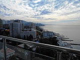 Площадь квартиры составляет 85 квадратных метров. Две комнаты, санузел и просторная терраса с чудесным морским видом. Просматривается панорама всего побережья вплоть до Адлера!