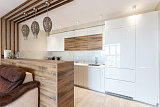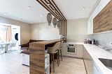 Каждый элемент в квартире продуман с любовью и заботой. Дизайнерский ремонт превращает помещение в уютную гавань, где хочется возвращаться снова и снова. Огромная кухня становится не только местом для готовки, но и притяжением для всей семьи, где собрания за большим столом становятся настоящими праздниками.
