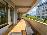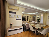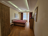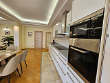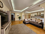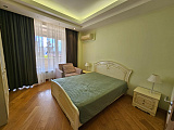 Данная квартира довольно большая и светлая с качественным ремонтом. В квартире установлена мебель и техника премиум класса. Стиль интерьера – современная классика. Также есть открытая терраса, окна которой выходят на улицу Черноморскую и, частично, на море. Две уютные спальни, три санузла, гардеробная, просторная кухня-гостиная.