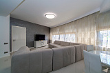 Площадь квартиры, представленной вашему вниманию, составляет 142 квадратных метра. Она станет отличным вариантом для жизни и отдыха больших семей за счет своей грамотной и детально продуманной планировки: