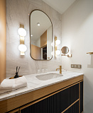 Резиденции комплекса отличаются легкостью и современностью планировочных решений. Вы можете выбрать вариант, который идеально подойдет именно вам – от компактной однокомнатной квартиры до просторных апартаментов с гостиной и тремя спальнями. В каждой резиденции обилие солнечного света и воздуха создает атмосферу свободы и простора. Четкие линии архитектуры, использование натуральных материалов, таких как лучшие сорта мрамора, добытые по всему миру, придают интерьерам элегантность и выразительность. Панорамные окна раскрывают завораживающий вид на море и окрестности, позволяя полностью насладиться красотой окружающего мира. Детали отделки продуманы до мелочей, отражая стремление к безупречному качеству и безупречному комфорту. В каждой детали чувствуется забота о вашем отдыхе, превращая его в произведение искусства, в настоящее эстетическое наслаждение. Это не просто место для жизни, это стиль жизни, это воплощение мечты о совершенном отдыхе, где каждый момент наполнен красотой, комфортом и гармонией.