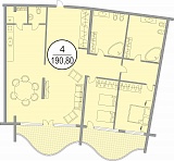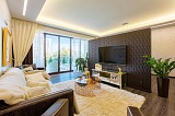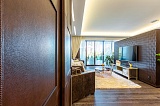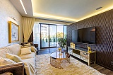 Элитная квартира площадью 190 кв.м расположена на четвертом этаже жилого комплекса с видом на парк и море.