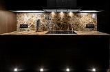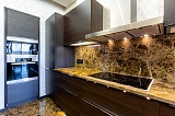 В отделке квартиры использован натуральный мрамор производства Италии - "Emperador Dark".