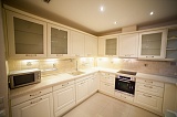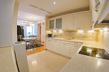 Интерьер квартиры исполнен в шикарном стиле современной классики – элегантной и роскошной. Мебель подбиралась дизайнерами в соответствии с общей стилистикой и, в большинстве своем, выполнена на заказ по индивидуальному эскизу. Бытовая техника фирмы «Meile».