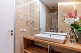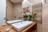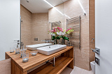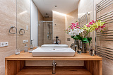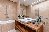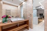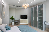 Апартаменты распланированы в отдельные две спальни. Кухня соединена с гостиной, что навеяно южным стилем. Из просторного холла гостиной выходим на просторную террасу, с нее открывается вашему взгляду вся панорама города Сочи. Морской пейзаж с закатной стороны украсит ваши вечера. В летний зной эта сторона укроет вас от солнца.