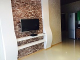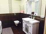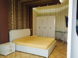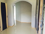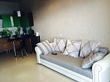 В квартире выполнен авторский евроремонт. Стены оклеены качественными и дорогостоящими текстильными обоями, пол – ламинат и крупная итальянская плитка. Как и в большинстве однокомнатных квартир, для экономии места, кухня совмещена вместе со столовой комнатой, которая одновременно играет роль гостиной. Санузел совмещенный. Мебель, которая остается в качестве небольшого подарка новоиспеченным жильцам, подбиралась в соответствии с общим интерьером квартиры. Расположена данная «однушка» на пятом этаже новостройки, а из окон ее открывается прекрасный вид на бескрайнюю гладь Черного моря!