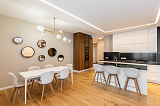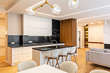 Дополнительных вложений в обустройство пространства вам не потребуется. Все уже полностью готово для жизни и отдыха. Внутренняя отделка квартиры – это стильный дизайнерский ремонт, который покорит и очарует самую требовательную и искушенную публику. Все комнаты полностью укомплектованы дорогостоящей мебелью и бытовой техникой. Разумеется, есть и климатическое оборудование. В гостиной комнате установлен эко-камин.