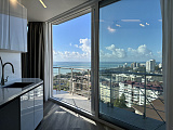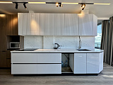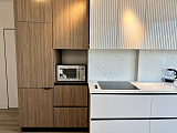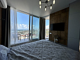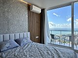 Площадь представленного предложения – 70 м2. Сердце квартиры – большая кухня, объединенная с гостиной зоной и выходом на открытую террасу. Спальная зона в квартире изолирована и также может похвастаться невероятным видом на морскую акваторию. Очень оригинально сделан санузел – из ванной сделано окно в спальню. Соответственно, отсюда также открывается прекрасный вид на море. В прихожей части организована достаточно большая система для хранения личных вещей.
