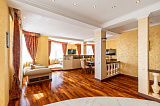 Внутри, как вы можете отметить, просмотрев фотографии, выполнен очень качественный ремонт в основе которого лежит роскошная классика. Мебель из древесного массива, бытовая техника премиум-класса, грамотно подобранный декор – все это, несомненно, выгодно отличает предложение от альтернативных вариантов рынка курортной недвижимости.