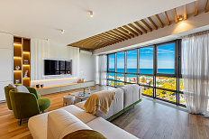 Также в квартире есть большая открытая терраса, обращенная в морскую сторону. Все комнаты очень светлые и просторные. Зонирование продумано в мельчайших деталях.