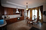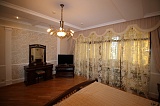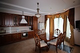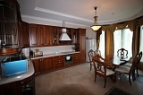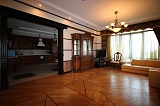 Внутриквартирная отделка – это дорогой шикарный ремонт, который всем своим видом подчёркивает принадлежность жилища к элитарной категории. В основе лежит очень изящный и стильный классицизм, красиво обыгранный мотивами викторианской эпохи. В оформлении пространства были использованы такие материалы как бронза, мрамор, муранское стекло, красное дерево, итальянский кафель и т.д. Очень дорогая мебель! Спальни от «HALLEY», кухонный гарнитур от «ARRITAL CUCINE». Сантехника была привезена по специальному заказу из Испании (бренд «Roca»). Светильники – «BADARI LIGHTING».
