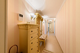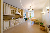 Интерьер квартиры исполнен в лучших традициях современного классического стиля. В основе оформления лежит светлая палитра красок, дополненная оригинальным декором. Мебель и даже техника - все подбиралось в соответствии с общей стилистикой и с расчётом на комфорт и удобство жильцов.
