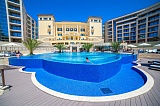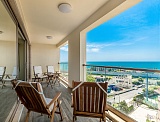 Площадь нашего предложения – 142 кв.м. Внутреннее пространство очень удобно поделено на две больших спальни, два санузла и кухню, совмещенную вместе с гостиной комнатой. Есть просторная терраса, с которой открывается чудесный вид на территорию комплекса и морскую панораму.