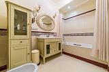 Внутренняя отделка – этого дорогостоящий дизайнерский ремонт в стиле прованс. В интерьере продумана каждая деталь, начиная от выбора общей стилистической концепции до подбора домашнего текстиля и фурнитуры. Установлена элитная мебель, новая техника.