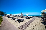 Кроме того, «Камелия» располагает своим собственным пляжем с белым привозным песком, мягкими лежаками и теневыми тентами, которые защищают гостей от солнца. Территория – один большой сад.