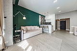 В квартире сделан стильный ремонт премиум-класса с применением качественных материалов от ведущих производителей, под наблюдением опытных специалистов. В интерьере – мебель из Италии, бытовая техника – из Германии.