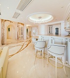 Уникальная элитная квартира на берегу моря. Эксклюзивная отделка высококачественными натуральными материалами, Итальнский мрамор выложен по эскизам европейских дизайнеров. Терраса. Квартира расположена на высоком этаже Панорамный вид на море. Полностью меблирована итальянской мебелью высокого класса - Cappelini 2 Спальни, гостиная Turri, кухня оборудована барной стойкой удобно переходящей в обеденную группу. 2 сан узла, отделаны мрамором, и итальянской эксклюзивной плиткой. Гардеробная, подсобная комната. Все двери сделаны на заказ итальянскими мастерами. Бассейн на последнем этаже комплекса, охрана территории, служба консьержей. ЦЕНА ДОГОВОРНАЯ
