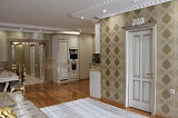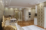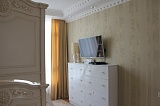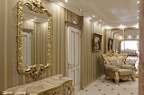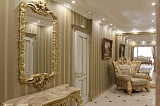 Основа стилистической концепции интерьера – роскошный классический стиль, который покоряет своей эстетикой с самых первых минут пребывания здесь. Мебель и декоративные элементы подобраны в соответствии с общим концептом. Поэтому пространство выглядит максимально гармонично и целостно.