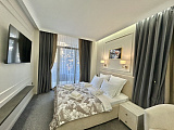 Апартамент оборудован всем необходимым для максимального комфорта, включая большую двуспальная кровать и просторный балкон с захватывающим дух видом на море и хвойный лес. Современный интерьер апартаментов продуман до мелочей, создавая ощущение гармонии и комфорта.