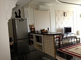 Площадь квартиры равна 64 квадратным метрам. Кухня с гостиной, как и в большинстве «однушек» в новостройках города, объединены, спальня непроходная. Санузел совмещенный. К продаже квартира предлагается с полным комплектом мебели и бытовой техники, которая, к слову сказать, специально подбиралась с учетом особенностей интерьера! Комнаты оборудованы кондиционерами и плазменными телевизорами, на кухне установлен большой и вместительный холодильник, вытяжка. Современная электрическая плита и т.д. Отдельного внимания заслуживает качественный евроремонт, выполненный с использованием дорогостоящих и экологически-чистых материалов. Роль напольного покрытия играет паркет из темного дерева, стены оклеены фактурными обоями на тканевой основе. Ванная комната и кухонный уголок оформлены итальянской плиткой. Расположена данная квартира на 5-м этаже ЖК Миллениум Тауэр, который находится буквально в 100 метрах от береговой линии. Из окон открывается прекрасный вид на море и, частично, на город.