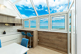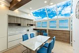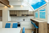 Общая площадь представленного пентхауса – 180 м2. Два уровня. Внутреннее пространство распланировано на три изолированные спальные комнаты, большую кухню-гостиную с панорамным потолком, три санузла и две гардеробные комнаты. Есть большая открытая терраса с невероятно красивым видом на Морской порт и Черноморскую акваторию. К слову, вид на море тут открывается из окон всех комнат.