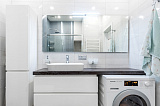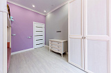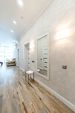Общая площадь – 72 квадратных метра. Отделка апартамента выполнена в стиле "классика", это подчеркивают изящные элементы декора. Мебель, элементы освещения, текстиль, бытовая техника – все это прекрасно сочетается с общим концептом оформления, благодаря этому интерьер здесь выглядит очень гармоничным.