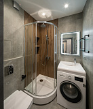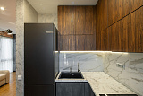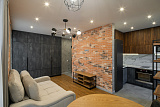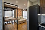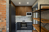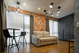 Интерьер квартиры оформлен в современном лофт-стиле. Большое внимание уделено расстановке мебели, декору и организации зон для хранения. Также дизайнеры тщательно продумали систему многоуровневого освещения, благодаря которому вы самостоятельно сможете задавать настроение и атмосферу.