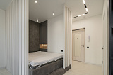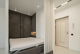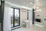 Площадь квартиры – 31,5 м2. Единое пространство зонировано таким образом, что в ней удобно размещены полноценное спальное место, рабочая зона и кухня. Просторный балкон может стать дополнительным местом для отдыха, откуда открывается восхитительный вид.