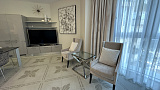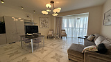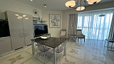 Эта стильная квартира выполнена в современном дизайне с использованием качественных материалов. Просторная гостиная с панорамными окнами открывает великолепный вид на море и наполняет пространство естественным светом. Гостиная гармонично соединена с кухней, которая оборудована всей необходимой техникой: холодильником, плитой, духовым шкафом и посудомоечной машиной. Здесь также есть уютная обеденная зона, где можно наслаждаться семейными ужинами с видом на закаты.Квартира оснащена системой кондиционирования и отопления, что обеспечивает комфорт в любое время года. Высокоскоростной интернет и кабельное телевидение уже подключены.