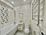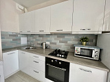 Внутри, как вы наверняка уже заметили, просмотрев фотографии, выполнен качественный и современный ремонт. Дополнительных вложений в обустройство точно не потребуется. В основе оформления лежит светлая палитра красок. Мебель и декор дизайнеры подбирали в соответствии с общей стилистикой. Даже бытовая техника весьма гармонично вписывается в общую концепцию оформления.