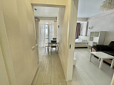 Общая площадь квартиры - 36 квадратных метров. Выделена спальная комната с зоной для отдыха, просторная кухня, отдельная гардеробная комната. Важный плюс – это собственный открытый балкон, где спокойно можно расположить комплект уличной мебели. Зонирование пространства тут продумано в деталях, поэтому квартира станет отличным вариантом для проживания семей до 3 человек.