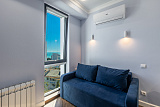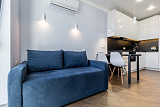 Пространство квартиры поделено на изолированную спальню и просторную кухню-гостиную с грамотным зонированием. Все комнаты оформлены в современном стиле с использованием дорогих и высококачественных материалов отделки. Все необходимое для комфортного проживания уже есть в квартире. Она полностью меблирована и оборудована бытовой техникой, включая климатическое оборудование. Отметим, что все отделочные и отделочные материалы были подобраны с большим вниманием к деталям, чтобы создать уютную и комфортную обстановку.