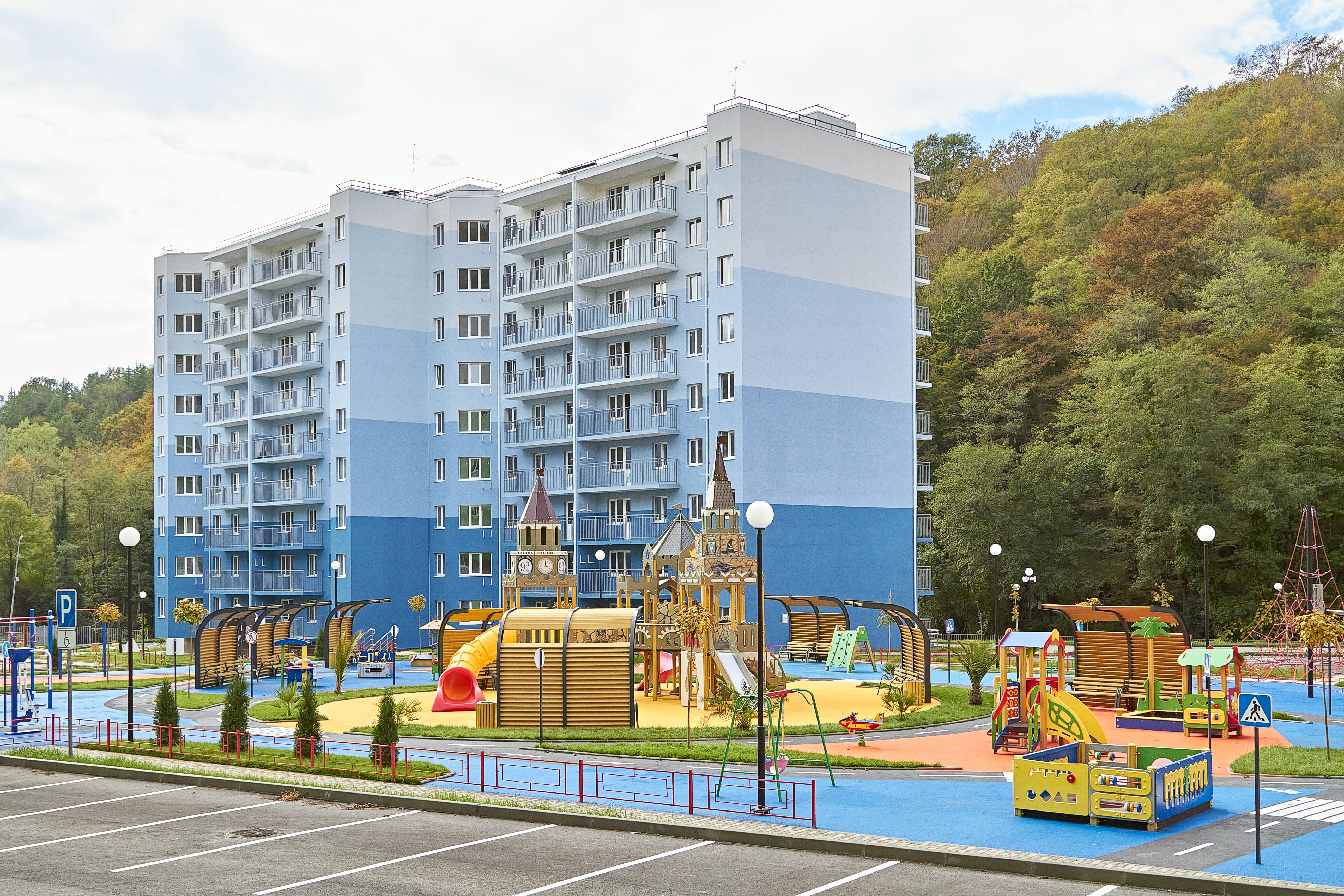 И третья отличительная черта комплекса это близость к центру Сочи и морю. Расстояние до Морского Порта всего 15 минут, а до ближайшего пляжа Цирк -10 минут.
