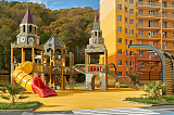 Комплекс так же славится большими детскими площадками европейского уровня. Гулять по территории можно весь день. Так имеются баскетбольные площадки, теннисный корт, зоны барбекю.