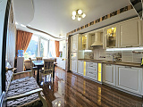 Квартира распланирована в две просторные спальни со своими гардеробными комнатами, балконами и лоджиями, кухня-гостиная со всей встраиваемой техникой, два санузла с стиральными и сушильными машинками.
